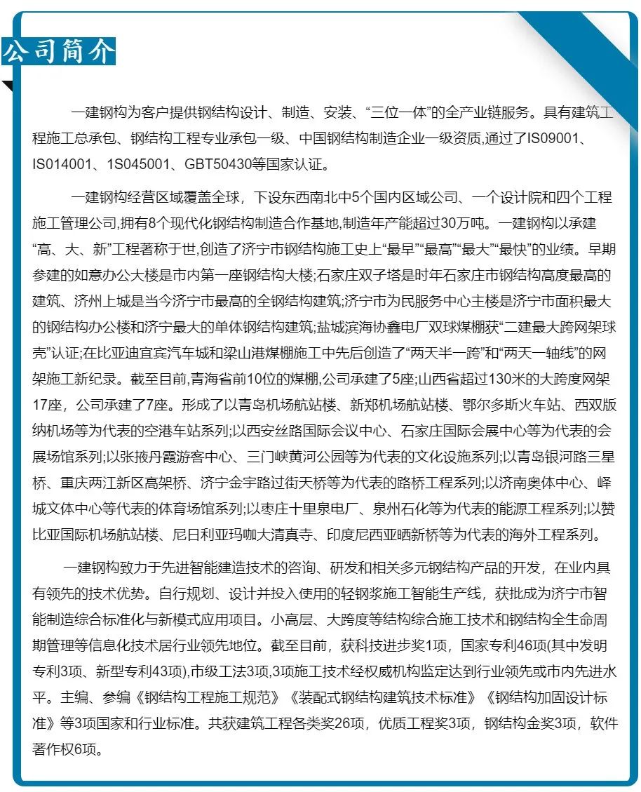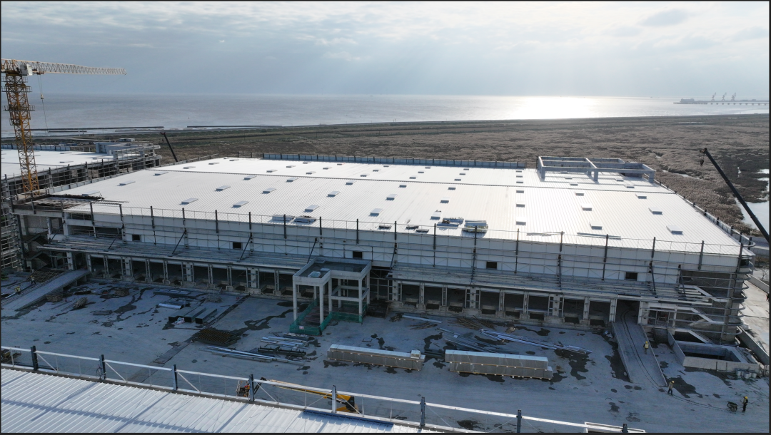 濟(jì)寧一建鋼結(jié)構(gòu)工程有限公司承建的金屬屋面及維護(hù)工程,涉及1#-4#物流倉庫、高架立體庫。倉庫跨度80米,屋面標(biāo)高34.1米,為雙向找坡結(jié)構(gòu)。該項(xiàng)目建設(shè)規(guī)模大、工期緊、技術(shù)精度要求高、工況復(fù)雜,自項(xiàng)目開始施工。公司對(duì)現(xiàn)場管理嚴(yán)格要求,積極配合業(yè)主及總包的整體調(diào)配,施工嚴(yán)格執(zhí)行施工方案,遵循規(guī)范標(biāo)準(zhǔn),合理安排人、機(jī)、料等,戮力同心將馬士基臨港旗艦倉項(xiàng)目打造成精 品工程、優(yōu) 質(zhì)工程。